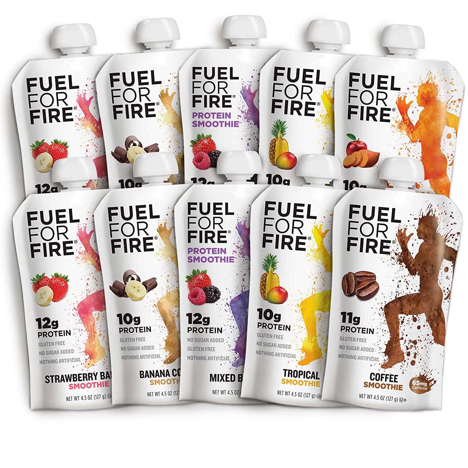 Fuel For Fire - Variety Pack with All 6 Flavors (10 Pack) Including New Mixed Berry! Fruit & Protein Smoothie Squeeze Pouch | Gluten-Free, Soy-Free, Kosher